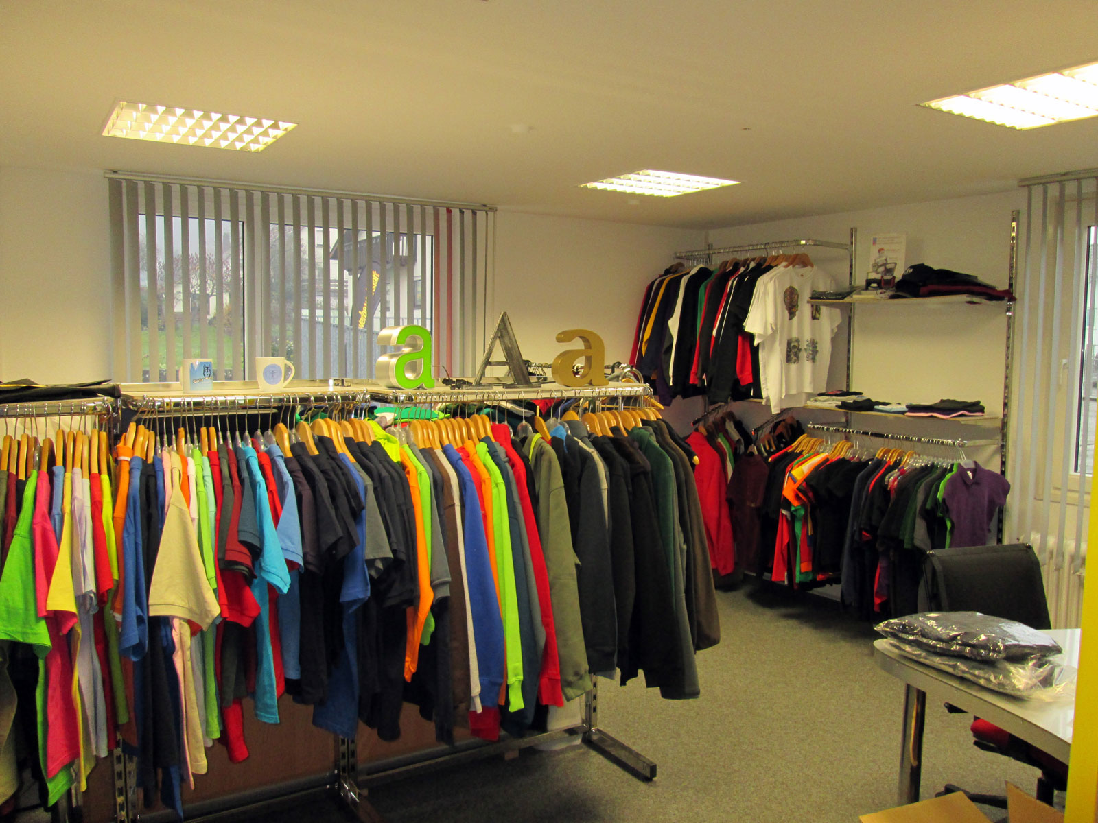 - Textilien: Transfer,- Flex-, und Flockfolierdruck, Siebdruck, Thermosublimationsdruck, Veredelung von Textilien (Strassmotive, Laserprägung auf Fleece, Stickmotive