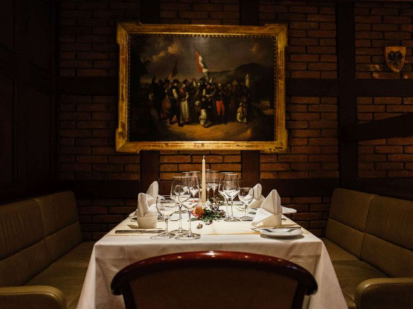 Logo des Waldshuter Hofs, einem Restaurant-Hotel, mit stilisierter Fenstergrafik und goldenen Akzenten.